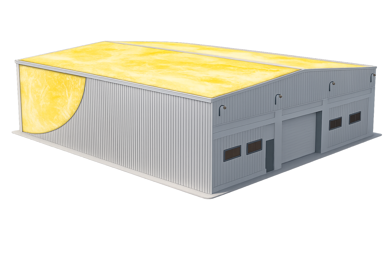 MBI (Metal Building Insulation) en espesores 2”, 3”, 4”, 6" con fibra de vidrio y foil reforzado para control térmico y prevención de condensación en naves industriales.